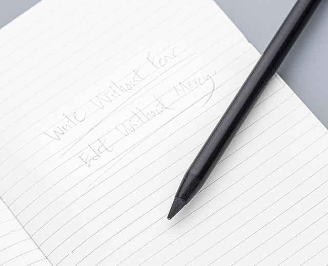 No sharpening and ink required. The nibs rubs on your notebook or paper to decompose the graphite molecules and leave them on surface.